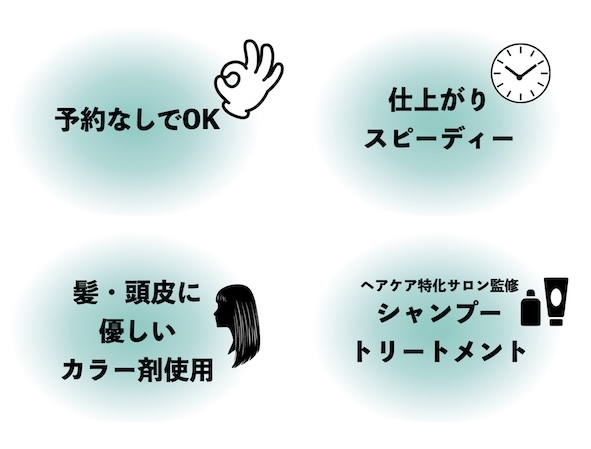 予約なしでそのままご来店頂いても大丈夫!お待ち時間は混雑具合で異なります。*ご予約枠も一部お取りしておりますので、あまり待たずにカラーリングをしたい方はお電話でご予約下さい。